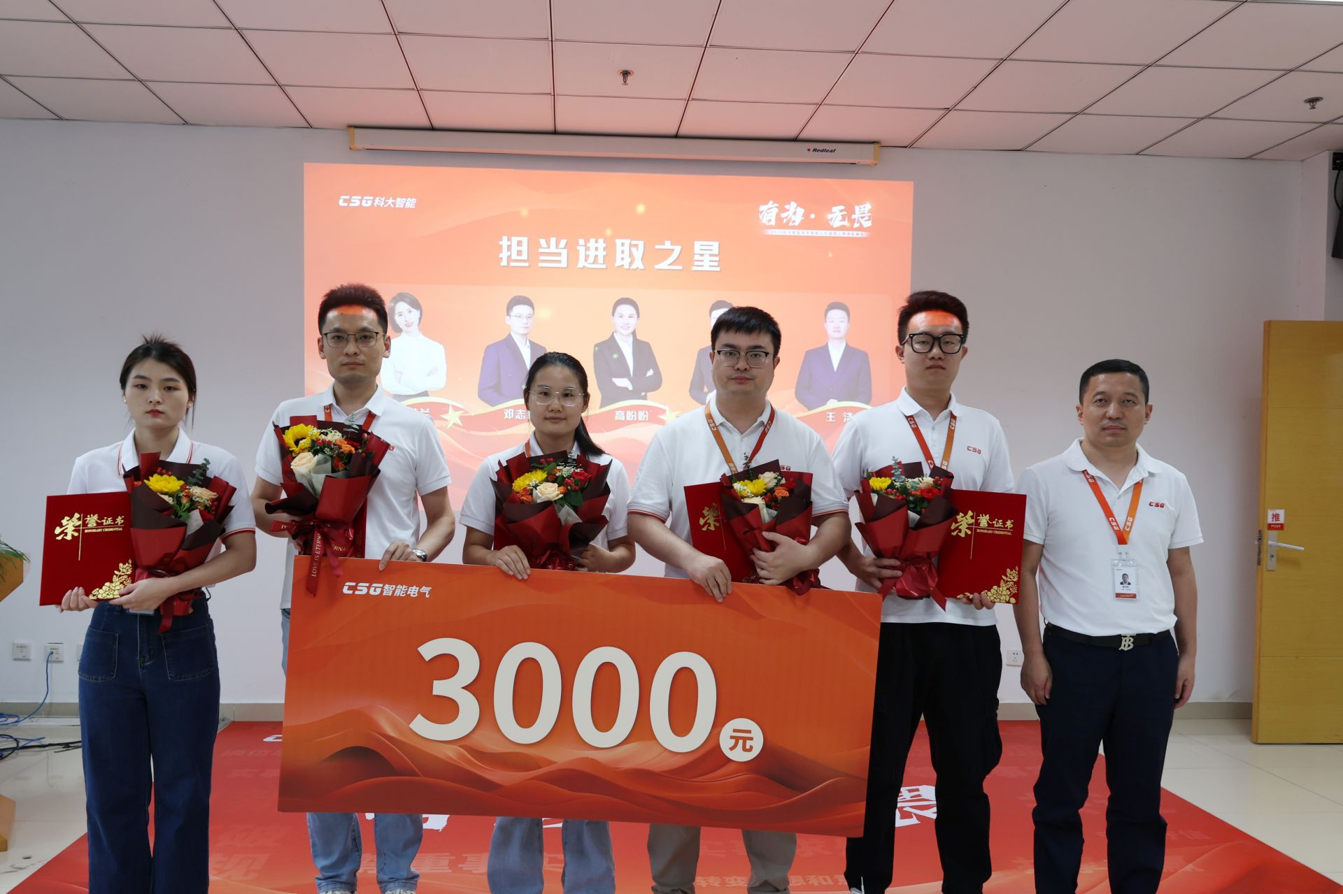 科大智能科技股份有限公司执行总裁、电网bg总裁汪婷婷作总结发言。汪总首先代表公司对全体获奖者表示祝贺及肯定,每一个振奋人心的突破背后,是科大智能人的坚韧不拔和奋力协作。科大智能历经22年沉淀,我们的大家庭中仍有众多无私奉献、默默耕耘的同仁,他们在各自的岗位上熠熠生辉,以实际行动践行“创造价值、分享价值”的企业精神和“诚信、担当、开放、创新”的核心价值观,他们是公司宝贵的财富,也是推动我们勇往直前的不竭动力。同时,汪总也对入职周年员工表示感谢和祝福,勉励全体员工齐心协力,不断探索,完成csg实力进阶。