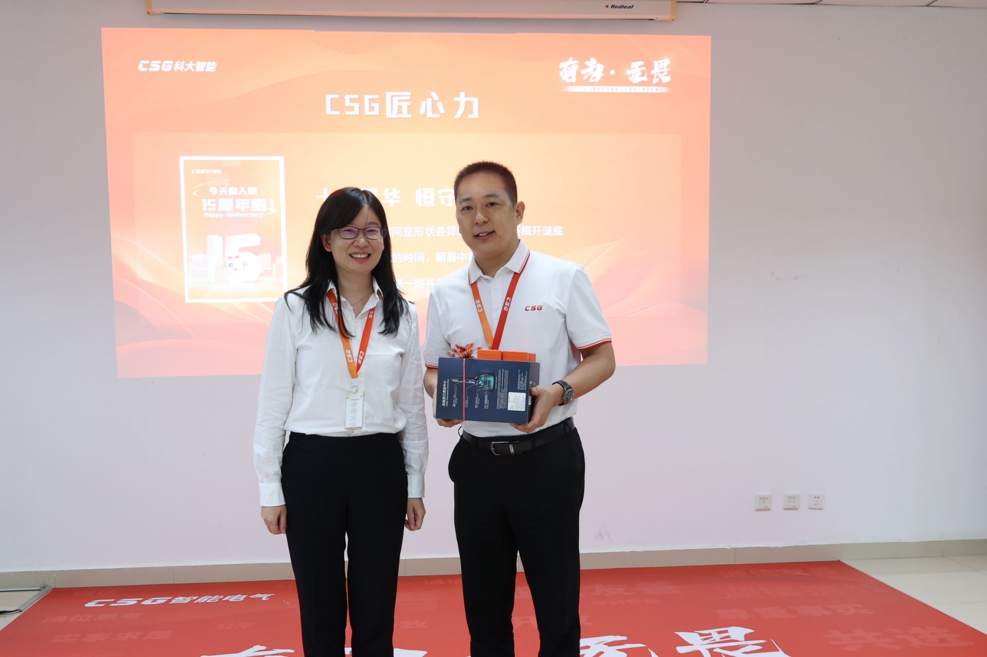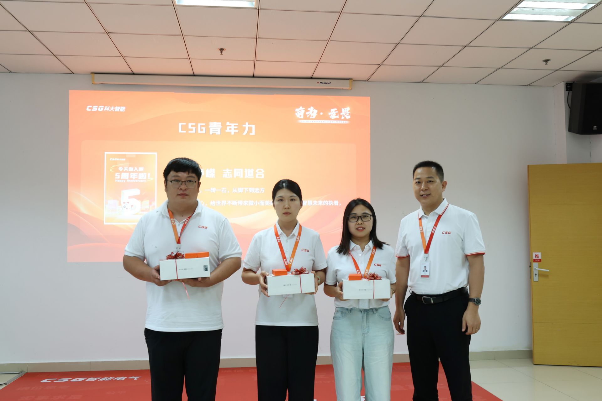 组织的蓬勃发展,离不开新鲜血液的不断注入,更离不开老员工们的薪火相传。"csg周年关怀计划",旨在员工职业生涯的重要里程碑时刻,以司龄礼的温馨形式表达公司对每位奋斗者的关怀与认可。通过在科大智能不断完成职场进阶,每位员工将获得一枚相应阶段的纪念徽章、祝福贺卡和纪念礼品,是对过往努力的肯定,更是未来征途中的美好希冀。